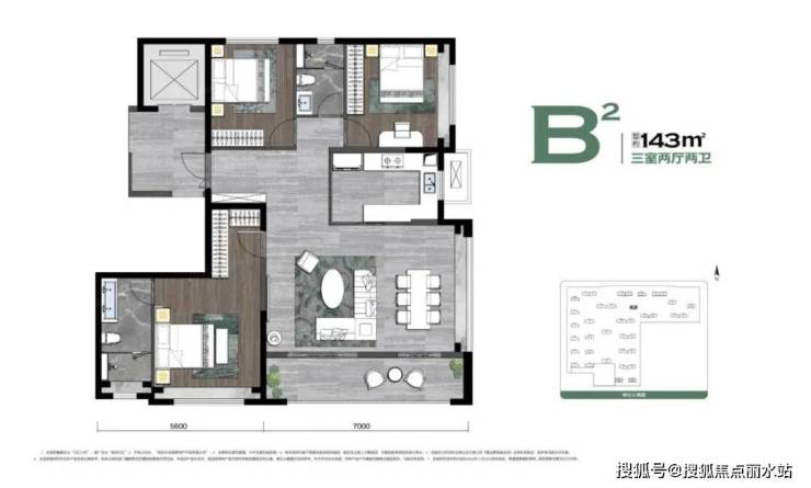 产品上:作为2022年的高新销冠,产品,尤其是户型还是抗打的,149亩的大社区,2T2户布局,纯高层设计,以主力建面约143㎡为例,主要有三个户型: