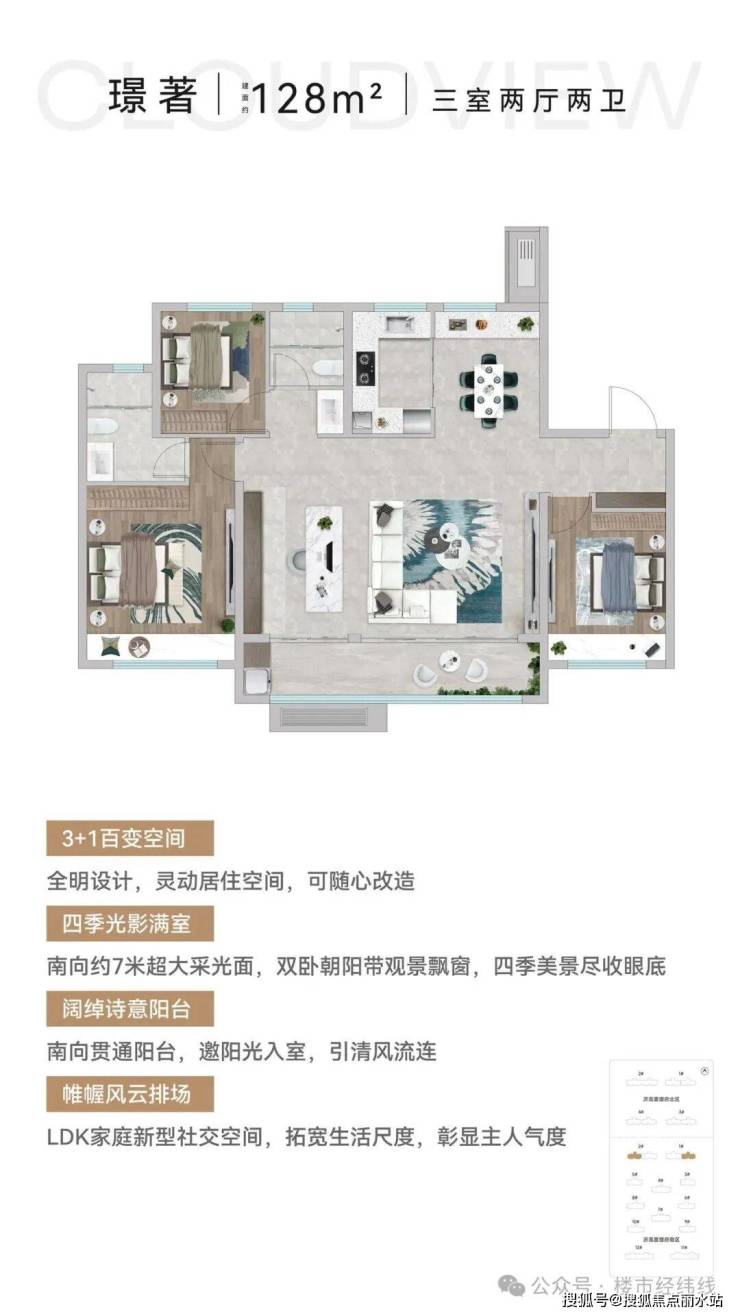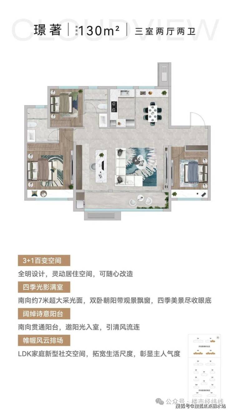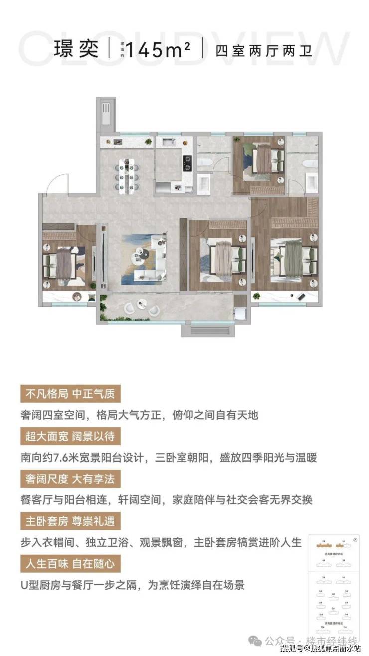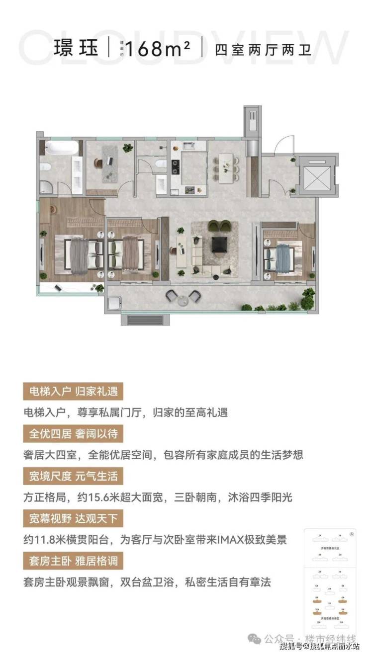 【项目规划】项目为低密度商住综合体,总建面约25.5万方,其中住宅建面约13.1万方,规划708套10-18层的洋房和小高层产品,面积涵盖约125㎡-310㎡宽境奢宅,满足客户不同的置业需求