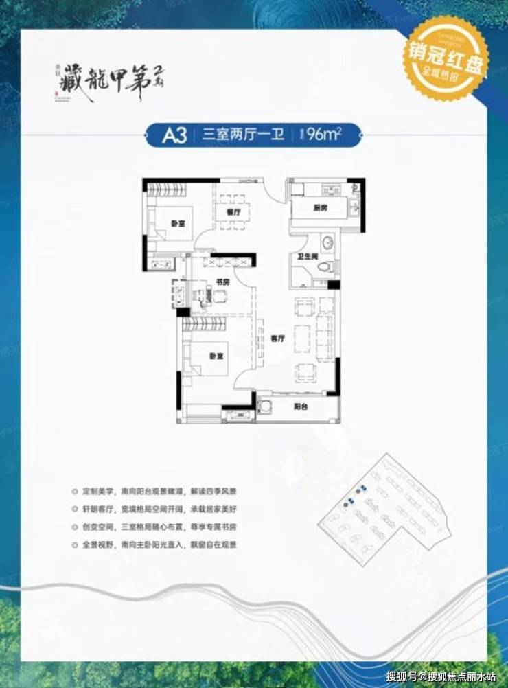 美联藏龙甲第二期 平层户型·建面/96㎡