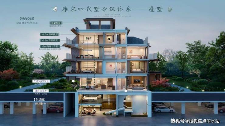 约5米挑高地下室:可打造影音、SPA、健身、会所等多元场景,突破地下空间传统定义。
