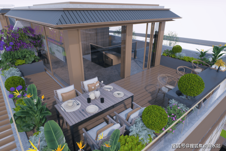 约88㎡屋顶星空大露台:作为建筑的“第二客厅”,可作为空中会客厅(派对/烧烤)、屋顶花园(花墙/绿植)、云端健身房(瑜伽/器械)或星空影院,随心可享。