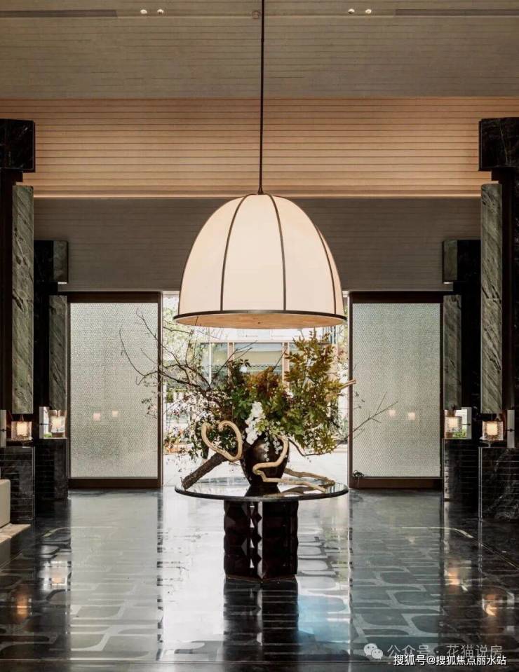 进门一条悠长的步道,以贝金米黄石材为基,两侧翠竹掩映,比四季酒店的度假风情更添一份庄重的仪式感。