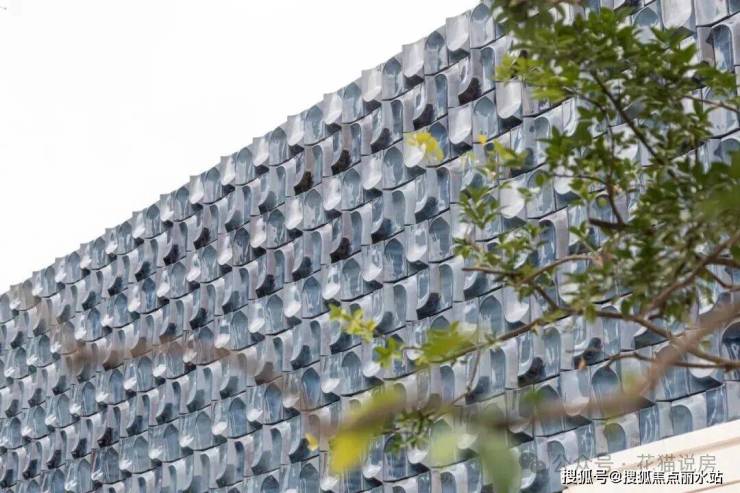 “礼仪盒子立面”作为归家的第一重场景,由1096块根据项目视觉形象定制的窑变釉陶板——“星潮”拼合而成,宛若一幅独此唯一的陶瓷艺术长卷,窑变釉面流转着四季的光色,砖块源于景德镇,成品率仅三成。
