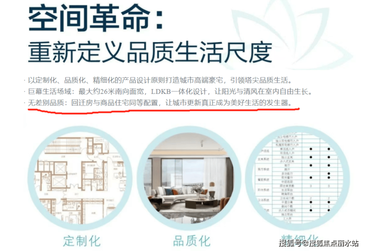 在某宣传文章中,可是清晰提到“无差别品质”回迁房与商品住宅同等配置“。