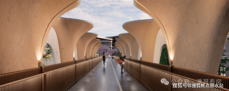 2、约300米灵感汲取自曼哈顿高线公园的空中活力廊桥,立体串联多元场景,重构社区生活维度与步行体验。