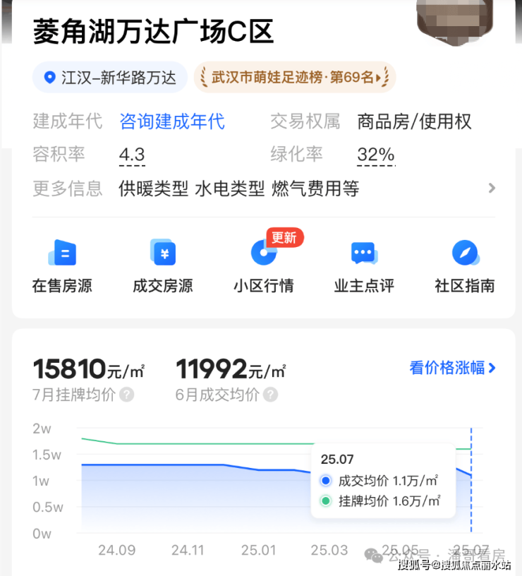 菱角湖万达广场,近期二手成交价1.01-1.2万,高峰成交价是2.43万。