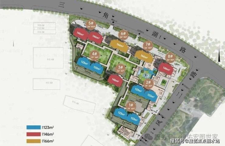 它的三款主力户型——建面约123㎡、146㎡、166㎡,全部四房以上格局,保证了圈层的纯粹。