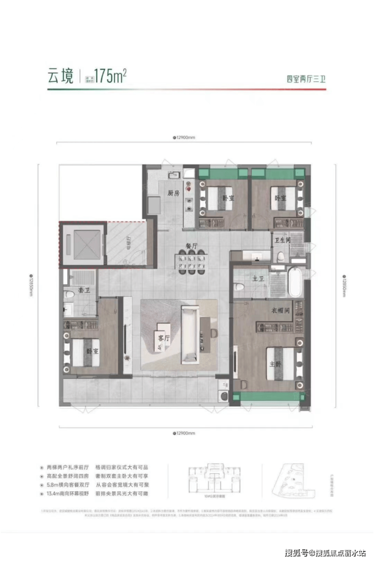 一期4-A地块占地面积约6.2万㎡,计容建面约23.4万㎡,住宅建面约22万㎡,容积率约3.77,共计1754套房源,户均建面约125.6㎡。