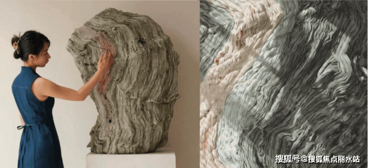 艺术家双禧的雕塑《翎》与武妍希的版画《境》,则传递着无限灵动与美好寓意,象征超脱世俗的心境,体现一种淡然、优雅的生活态度和精神追求,天然染色的织物层叠形成奇妙的变化,如江如雾的晕染都在隐喻无形中流淌的生命力与精神寄托。