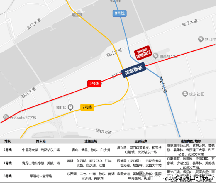 交通方面:项目附近有长江二桥、长江公铁隧道、武汉长江隧道等主干道,纵向有临江大道、和平大道、友谊大道等主干道,就是高峰期有点堵。项目与地铁8号线徐家棚站J出口直线距离只有400多米左右距离,还是蛮方便的。