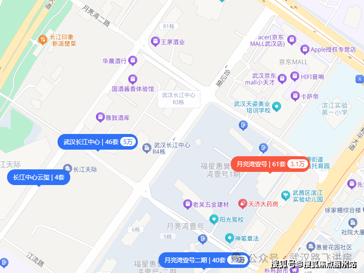 这个片区同能级的楼盘没有太多选择,在售新房唯有国铁城投·国樾滨江和武汉长江中心,二手房仅有月亮湾壹号和武汉长江中心,总价都比较贵。