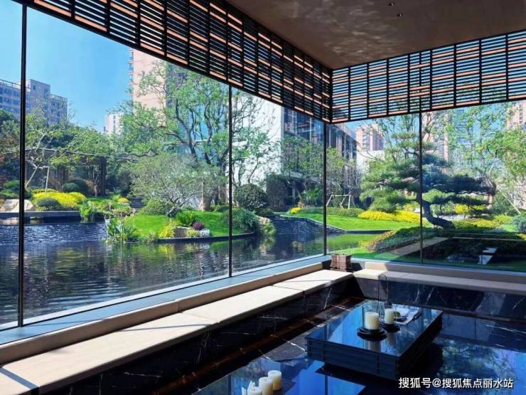 景观上,打造了实景呈现的成熟园林绿化,”四时四感“的设计,让园区内四季都有植物盛开,四季可观可赏,坐在下沉式看景会客厅,仿佛置身于高奢酒店之中。