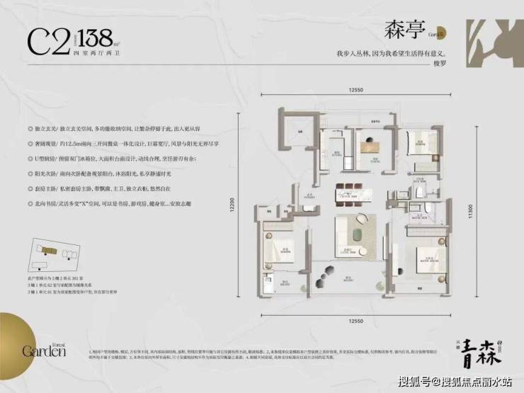 138平打造的是四房两卫设计,分为南厅和边厅两款设计,满足不同的客户需求。