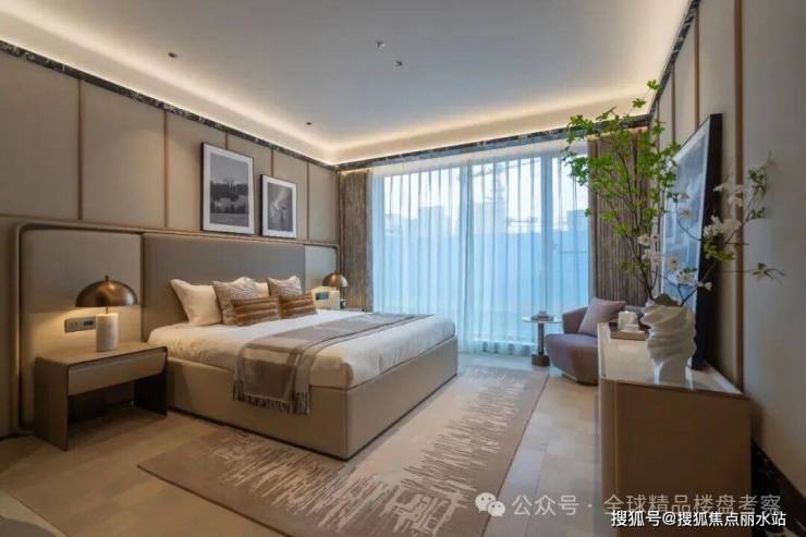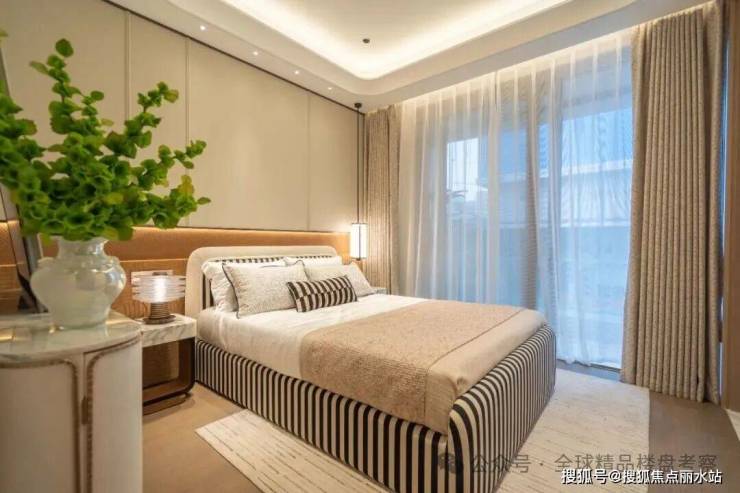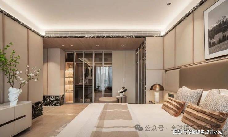每一个卧室,则是都拥有专属的背景墙,珍珠鱼皮与香奈儿格纹材质的搭配、菲律宾贝母手工工艺,还有麂皮纹、编织皮革等用材,都出现在了不同的卧室背景墙上……明知道这样做的成本更高、豪宅更多,但是依然坚持,为的就是给予业主更美观的享受。