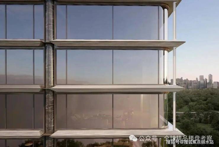 延续“金边玉幕”,以古铜色线条勾勒搭配中透玻璃,复刻艺术画框,270度大视野让窗外景色成为家家户户的室内装饰。