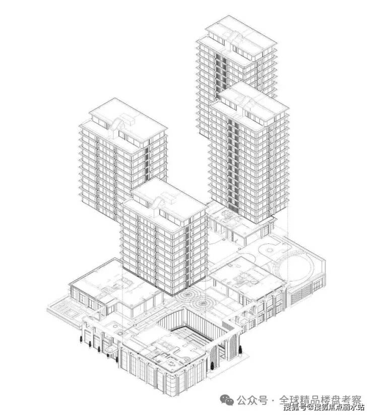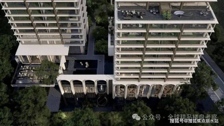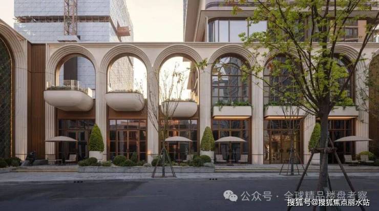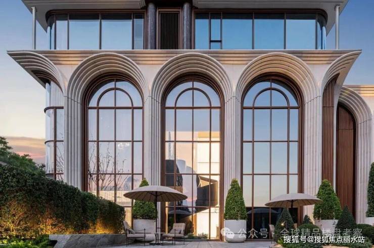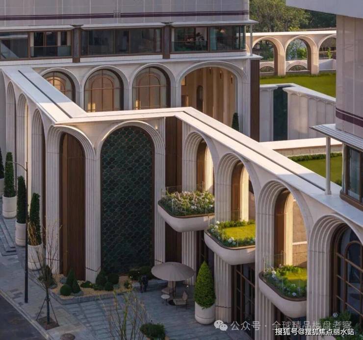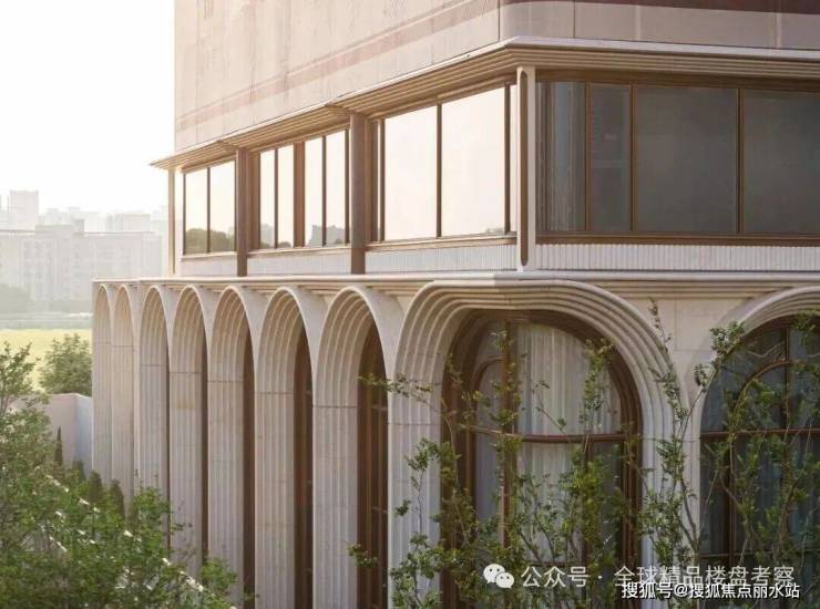 建筑设计由九米设计操刀,采用意式托斯卡纳风格,融合拱门、罗马立柱等元素,外立面运用玻璃、铝板等材质,营造悬浮感与雕塑感。首层抬高约12米,部分户型享270°环幕运河视野。打造意式托斯卡纳园林,含空中花园、下沉卡座、图书馆等,兼具艺术感与功能性。