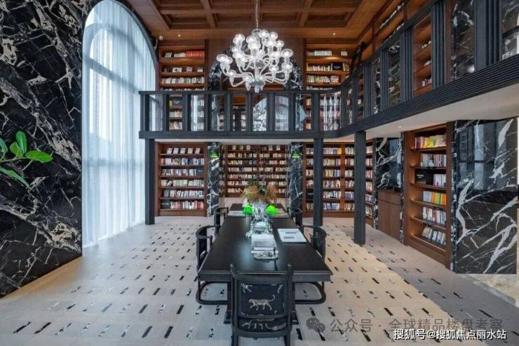整个咏印明庐亦如一座石材的博物馆,拱券用的是贝金米黄,庭院充满序列感的景墙也是贝金米黄,入口两边拱圈内镶嵌的是宝格丽绿,地面铺装的是雪白蒙卡,建筑主楼上的圆柱是幻彩紫,明庐图书馆里的拿破仑黑霸气侧漏,此外还有帝国灰,西班牙米黄,白金沙…