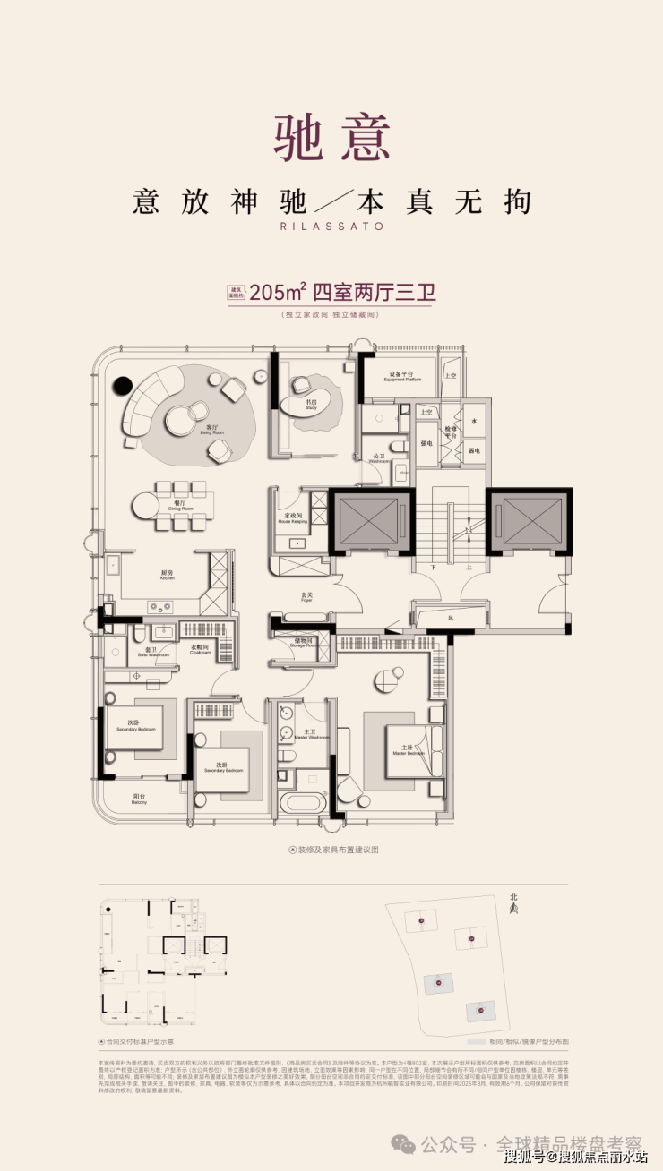 项目作为大家高端产品线「庐系」首发之作,融合意大利文艺复兴建筑美学与东方意境,以96席纯粹顶豪阵容重塑市场标准。项目规划4幢12-17层小高层,主打205㎡(层高3.15米)、245㎡(层高3.3米)、300-380㎡顶跃(首层3.6米)三大奢阔户型。