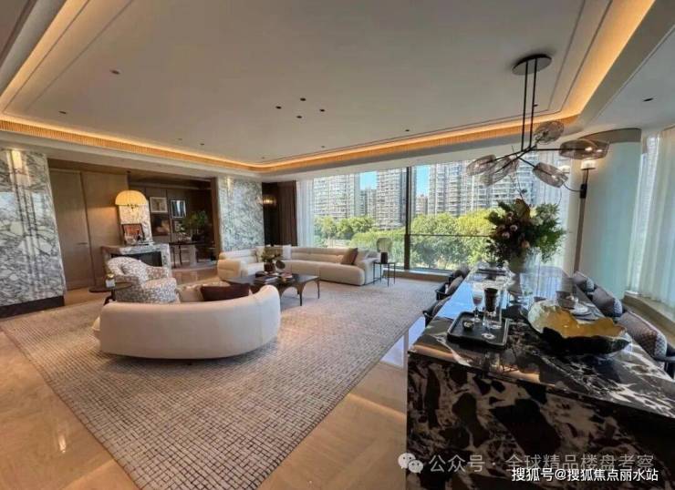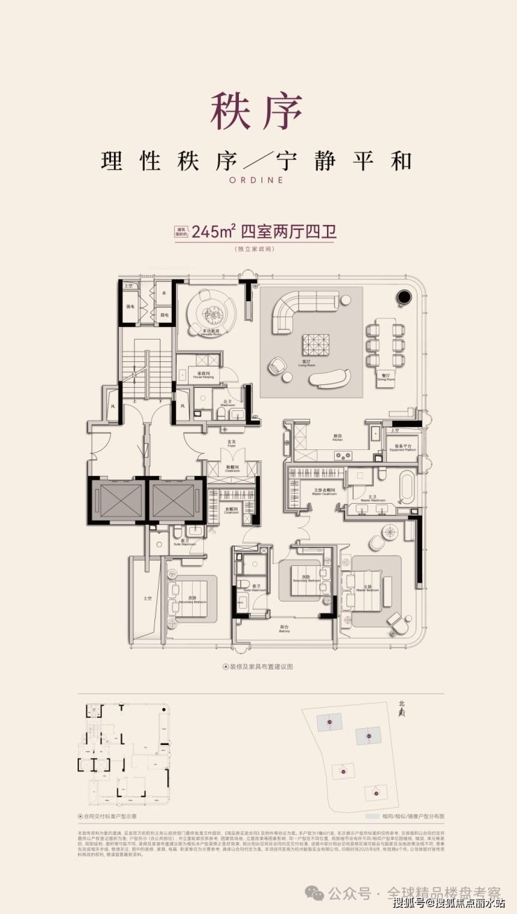 245㎡户型:四房两厅四卫,CCD郑忠设计,270°转角厅引运河入室,层高3.3米。