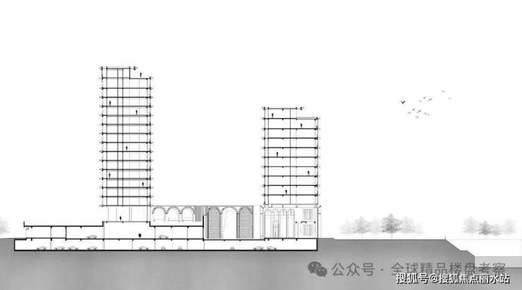 设计创造性地将部分消防登高场地布置在城市标高,正好作为入口广场,人行通过大堂和摆渡梯到达6米的活动层面,主要的消防道路和登高场地通过坡道抬升布置在6米平台,然后通过巧妙的建筑设计和景观设计将之消隐。