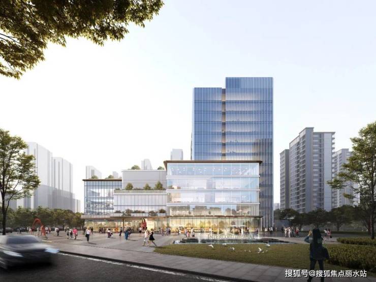 公建立面:以多元化的材质、尺度、错落进退,形成小体量的有机形态,在消解了矩形大体块压抑感的同时,也形成立面整体效果的均衡与统一,构建一个向上生长的绿色商业社区。