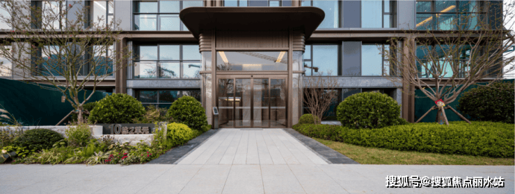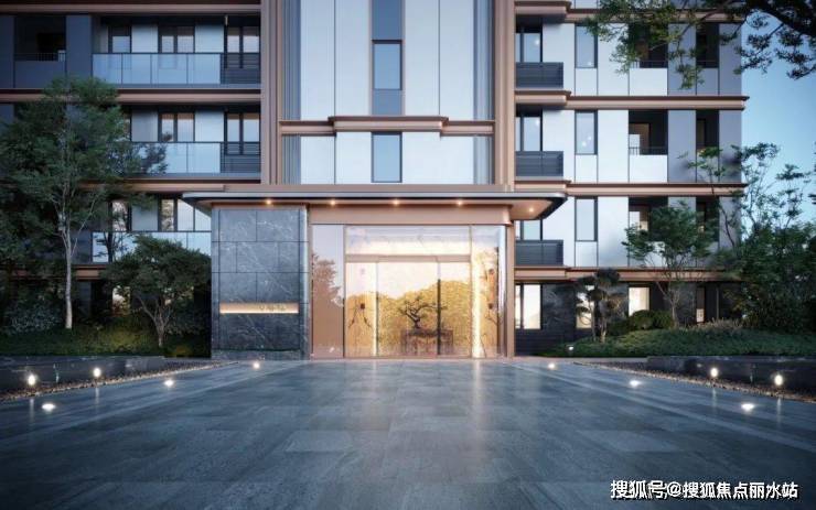 入户大堂采用非对的建筑形式,大面积玻璃与石材形成的虚实对比,石材的持正与铝板的光韵结合,既贵且雅;飘逸挑檐及豪华内饰更加突出大堂的轻盈大气;为业主营造舒适的入户体验。