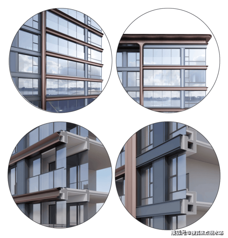 现代简约的立面没有复杂的线脚,没有繁冗的装饰,清晰明确的形体更需要精细研究,反复推敲;线条的大小,铝板与玻璃的比例,线脚的尺度,弧形边角等等,这些元素的和谐统一,才能呈现轻盈且优雅的立面效果;