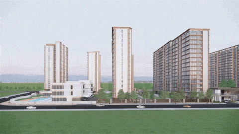 在外立面的打造上,对标国内外一线豪宅配置,大面积使用金属铝板+巨幕玻璃组合,再配以简约的“弧线”,展现通透纯净、轻盈典雅的国际化形象;自下而上生长的竖向线条与横向流动的圆弧线条交叉勾勒,带来立体、流畅的视觉冲击,以光影镜幕的流光艺术为灵感,打造出别具神韵的独有“鎏光感”。