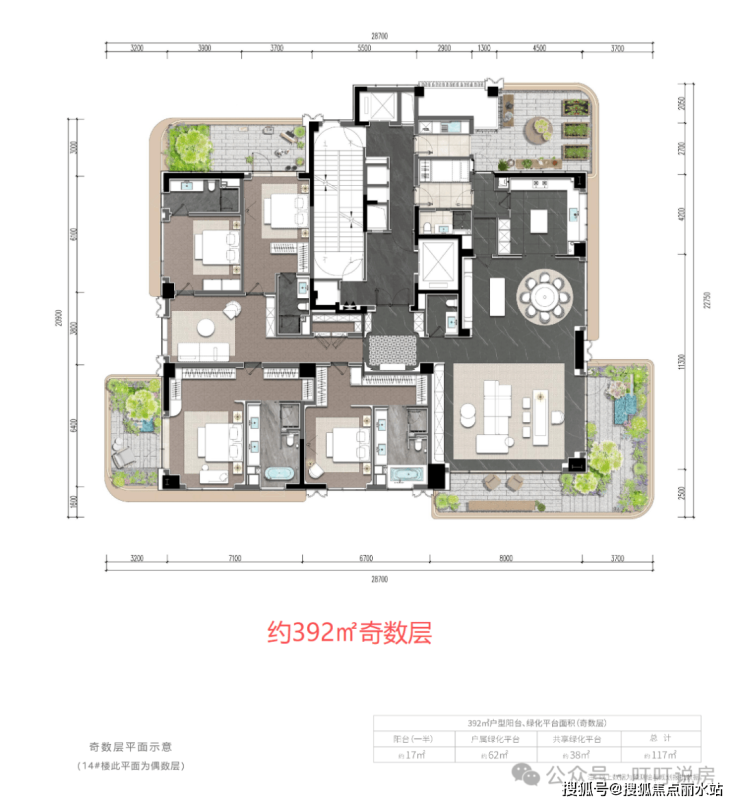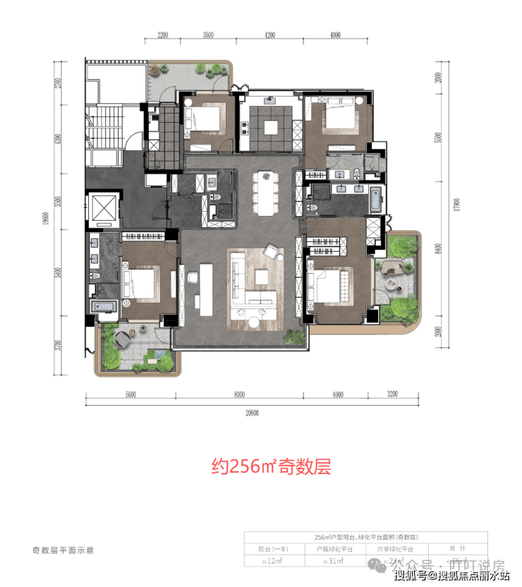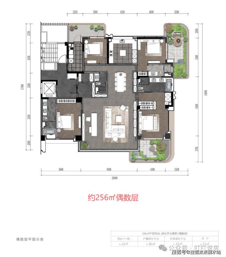 小区一共4个户型,256㎡、308㎡、392㎡和662㎡。