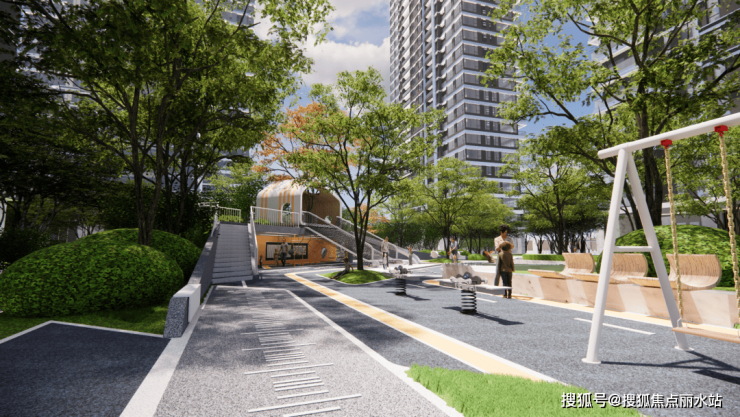 儿童活动区规划了学步墙、互动坡地、趣味构架等丰富场景,释放儿童天性,同时细心规划了儿童地垫保护孩子的安全。