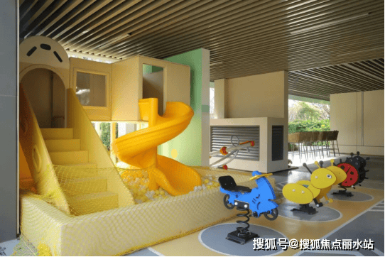 尤其是一些场地不算大,但功能复合度较高的融合场景,例如项目围绕园林景观,通过曲线划分出“儿童活动+ 家长陪伴”的童玩乐园,孩子既有肆意玩耍的空间,同时家长也能与孩子保持较近的安全距离。
