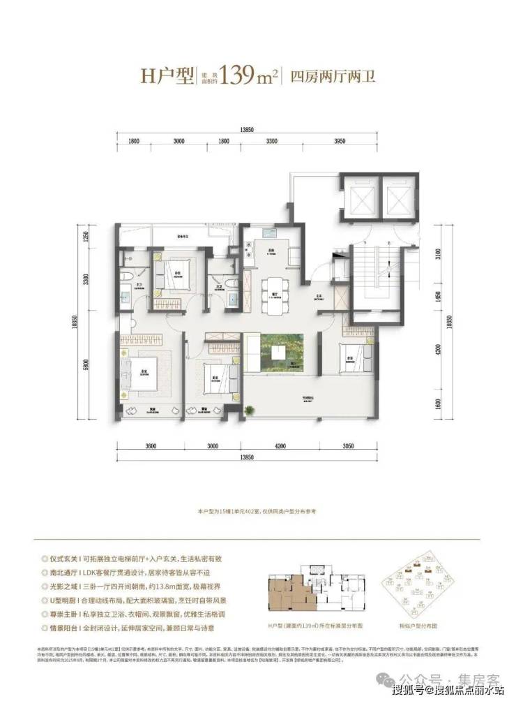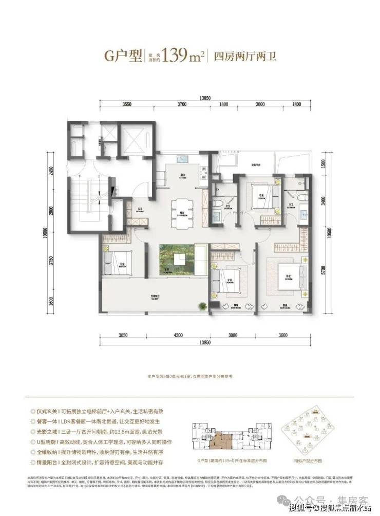 如果预算再多一点,家里人多一点,建面约128㎡边套四房户型,同样也是边厅户型,空间更大,功能性更强,总价相比市面上的139㎡还是亲民了许多。此外,作为板块首个封闭式阳台的住宅项目,还是之江首个全屋五重收纳功能柜子全赠送的项目。