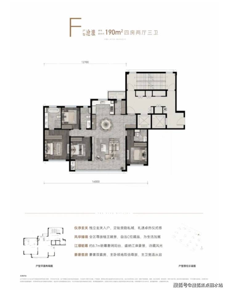 以江水波纹为设计灵感,精筑玻璃天幕立面,公建化立面,全封闭阳台,缀以优雅金属线条,顶部标志性塔冠造型,层层退台,为城市天际塑立时代地标,点睛江岸封面。