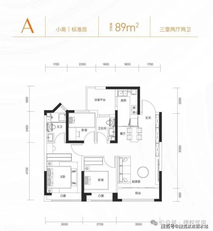 南向三开间,双卧飘窗加宽幅阳台,全明赏景