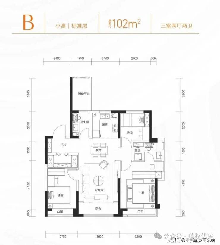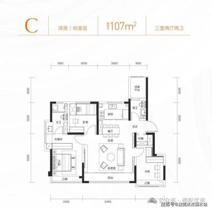 约11.7米南向大面宽,三开间朝阳,约5.4米方正宽厅,主卧套设计