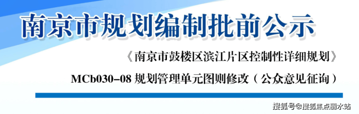 《南京市鼓楼区滨江片区控制性详细规划》MCb030-08规划营理单元图则修改(公众意见征询)》。
