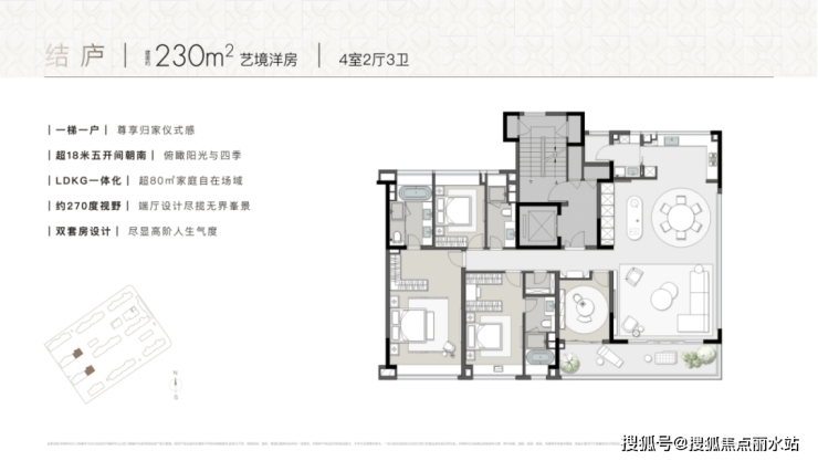 230㎡洋房专享一单元一梯一户设计,私享入户门厅,没有邻居打扰,享受更加安静和独立的空间,主人的私密性和尊崇感都被牢牢守护。