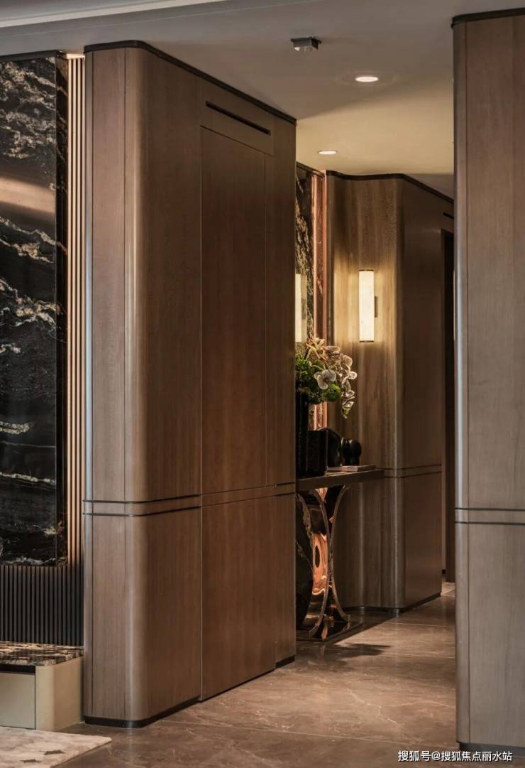 刚进门,眼前圆润的转角、高级的石材照壁、一路到底的木色,高门显贵的神秘感扑面而来。