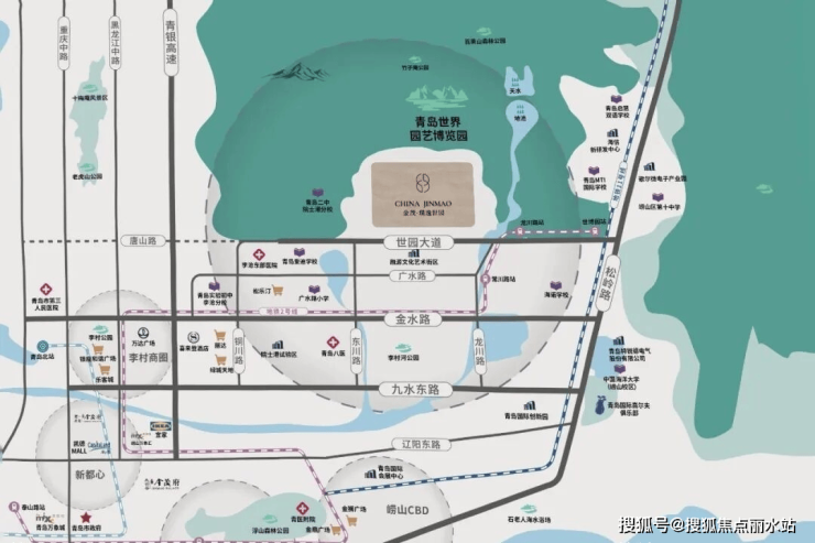 风水优势:青岛顶级 “太师椅” 风水住区!背靠龙脉百果山,前揽玉带李村河,台地格局藏风聚气,比肩世界高端住区。