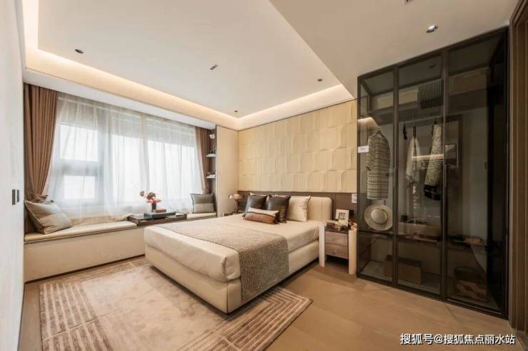 酒店式主卧套房,搭配大尺寸的衣橱、独立卫浴,且实现衣柜自由,将主人的尊享感直接拉满。