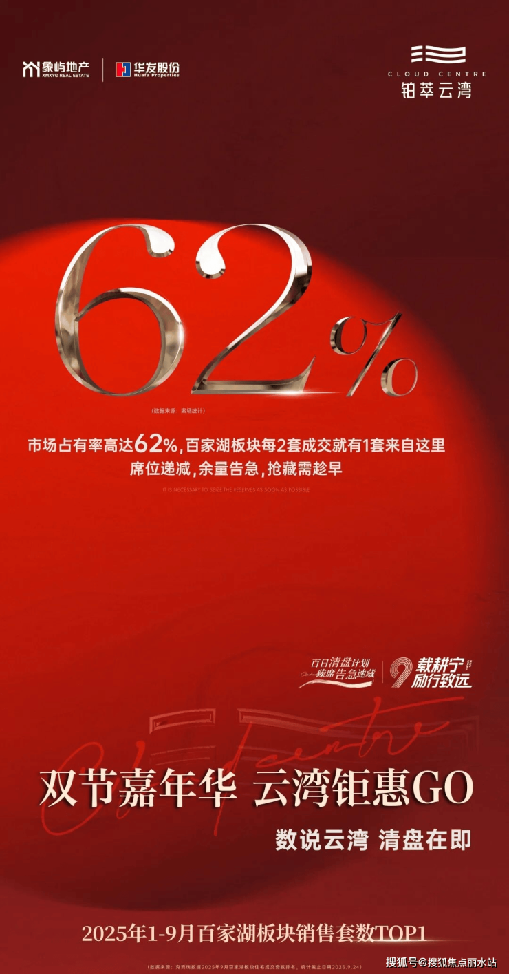据克而瑞数据,2025年1-9月,铂萃云湾荣登百家湖板块销售套数TOP1。