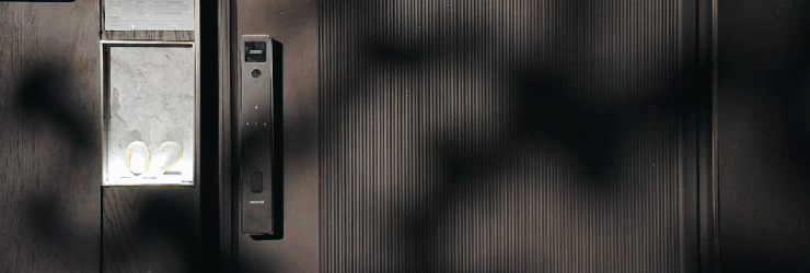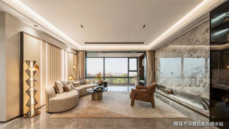 入户门搭配西门子四合一电子锁,客厅背景墙岩板材质。