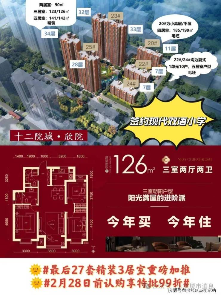 十二院城,第11院【欣院】,已经加推了,交房倒计时中,收官加推,错过再无。春天买,秋天住,实景房源,压轴绽放。最后27套,经典126平3居室。