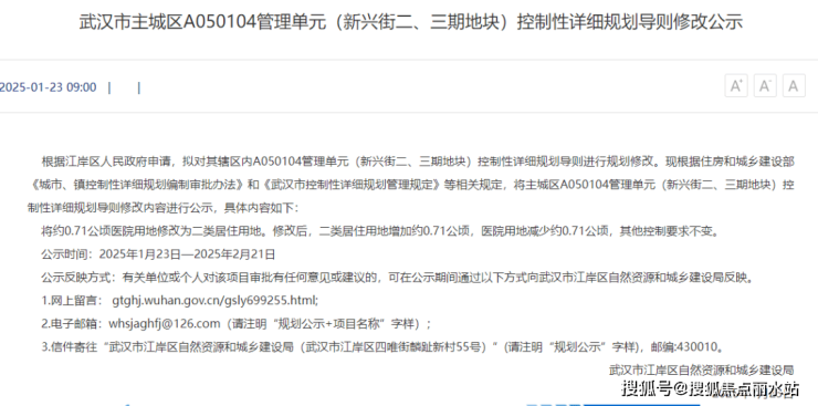 将约0.71公顷医院用地修改为二类居住用地。修改后,二类居住用地增加约0.71公顷,医院用地减少约0.71公顷,其他控制要求不变。
