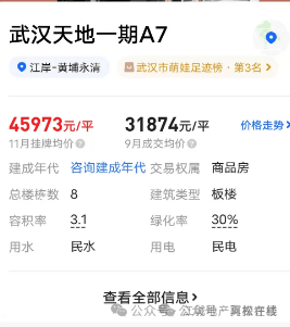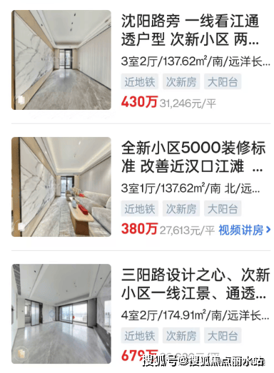 周边武汉天地非看江地块,二手房成交均价已降至3万/平出头。