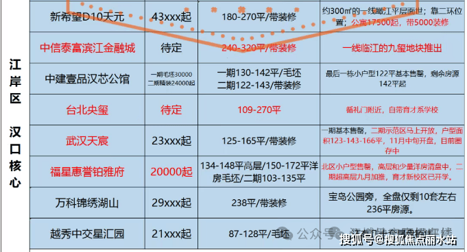 前些年周边汉口核心也开发过几个项目。早年较近的远洋长江樽包含一栋超高层住宅,带装修卖到4万多/平,五福路1号包含洋房、小高层和高层,成交均价约4.9万/平左右。电建地产汉口公馆6-10层的洋房均价在4万/平左右。最出名的也是价格最高的是华发外滩荟,洋房和叠拼卖到了约5.5万/平起。