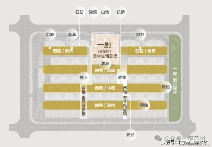 琨悦里承袭玉山草堂造景手法,打造一剧一带两轴四巷十二景园林景观,政府规划约2700㎡城市活力公园(红线外规划),约500米环形跑道、雅居会客厅,五重礼序层层递进,展现诗画般风雅园境。