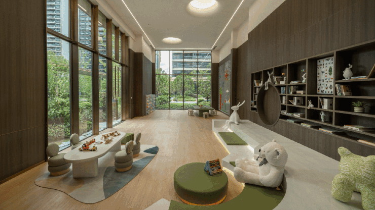 架空层则依据全龄段需求进行主题化打造,设置商务空间、光影放映厅、童梦绘本馆、花艺手作区、瑜伽健身空间及邻里社交吧等模块,让架空层成为“家外之家”的生活延伸,触发更多社区互动与温情陪伴。