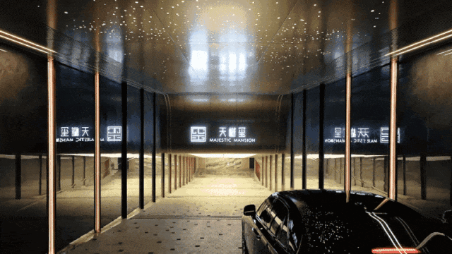 精装地库作为归家体验的重要一环,以“瀑布式”一体化门头、劳斯莱斯同款星空顶与智能追光系统,打造出温州首个全精装豪宅地库范本。车辆驶入,灯光随行亮起,如同穿越一条鎏光大道,从步入地库伊始,即开启一场尊崇的归家仪式。