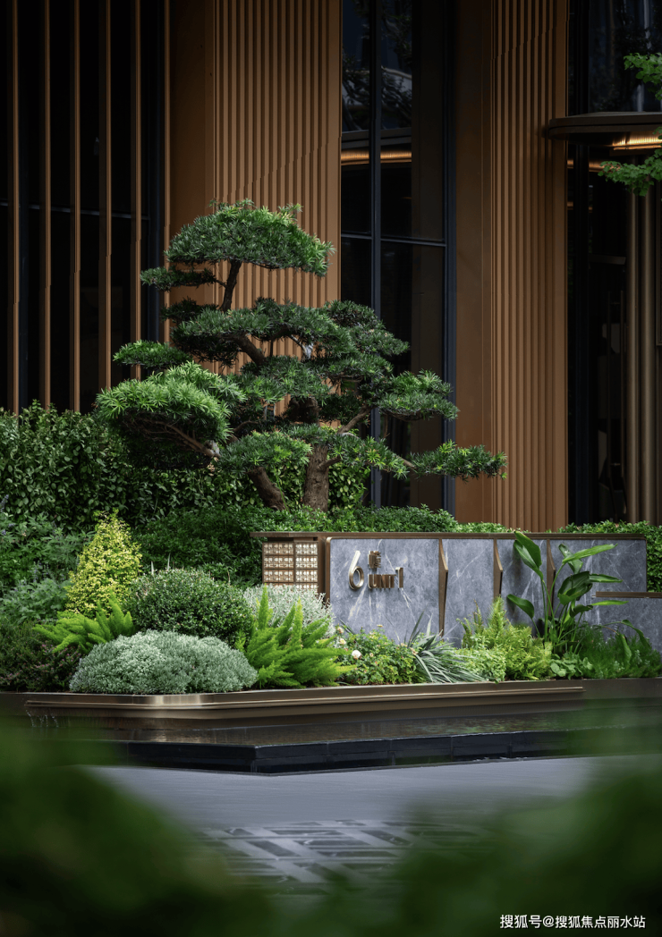 天樾玺的精致感,不是靠贴品牌标签,而是把宝格丽酒店的尊贵感,变成了业主每天都能摸到的日常 ,每栋前都配了一株名品罗汉松,宝格丽风格入户大堂,使归家每一步都有被重视的仪式感。